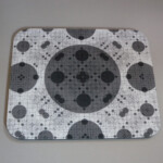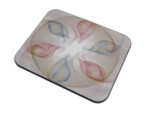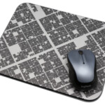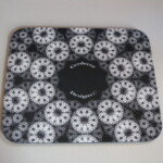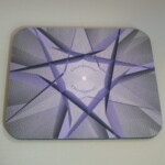 The new batch of mouse pads have arrived. The following photos show three designs. The monochromatic design with triangles was created when I took some classes at Bakersfield College. The triangles are arranged in the formation of a galaxy. It’s a simplistic design. The next one is described as mysterious gravity waves, because that’s what it looks like to me. If you look at it with a black light it brings out the pattern quite vividly. The mouse pad with overlapping circles of varying colors exhibits shapes emerging such as triangles and other two dimensional polygons.